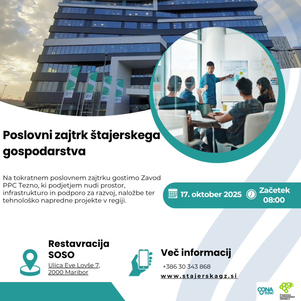 Z veseljem vas vnovič vabimo, da se nam pridružite na poslovnem zajtrku, kjer bomo v prijetnem okolju omogočili izmenjavo izkušenj, širjenje poslovnih mrež in povezovanje z drugimi podjetji iz naše regije.