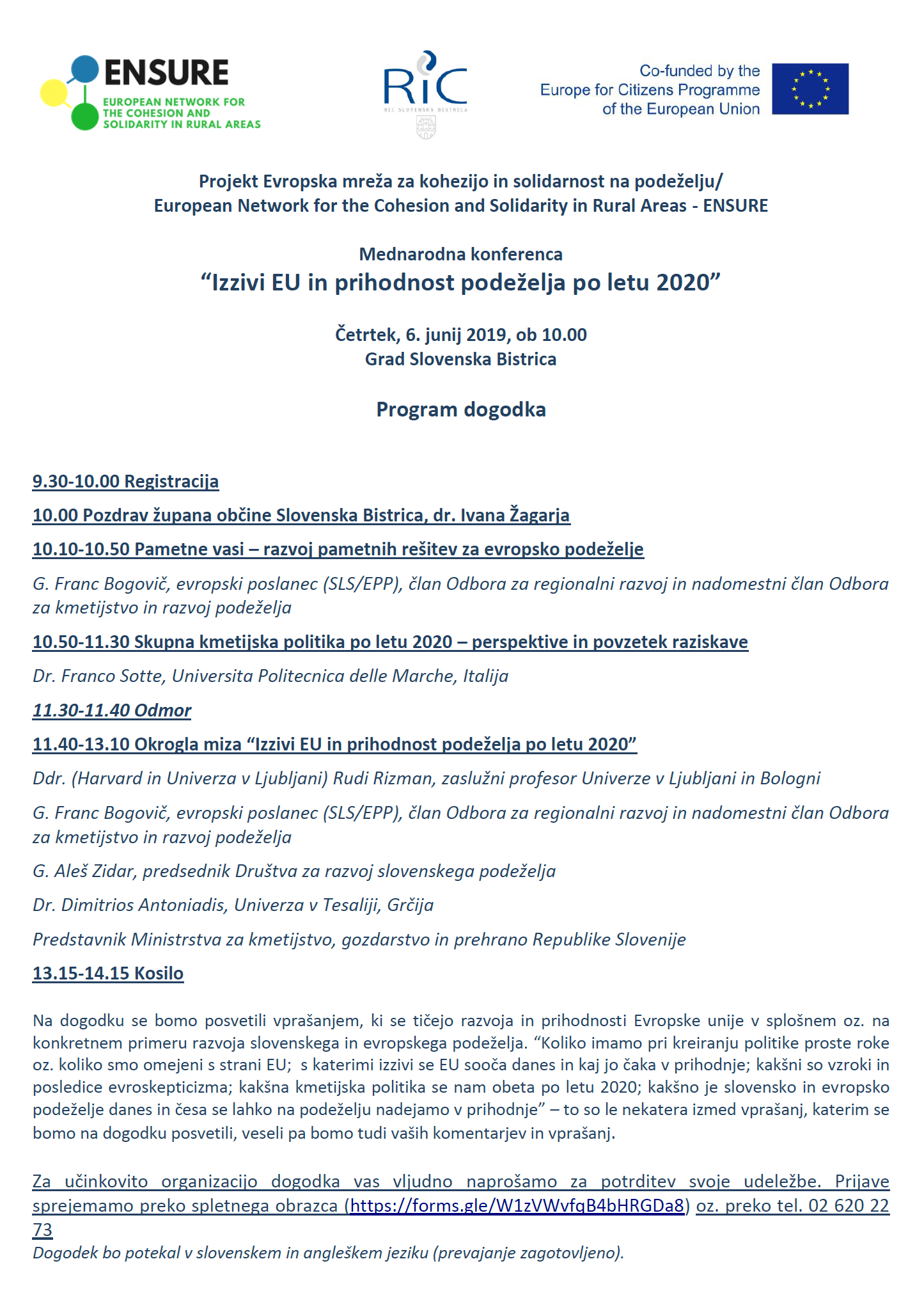 Mednarodna konferenca “Izzivi EU in prihodnost podeželja po letu 2020”, Slovenska Bistrica, 6.6.2019