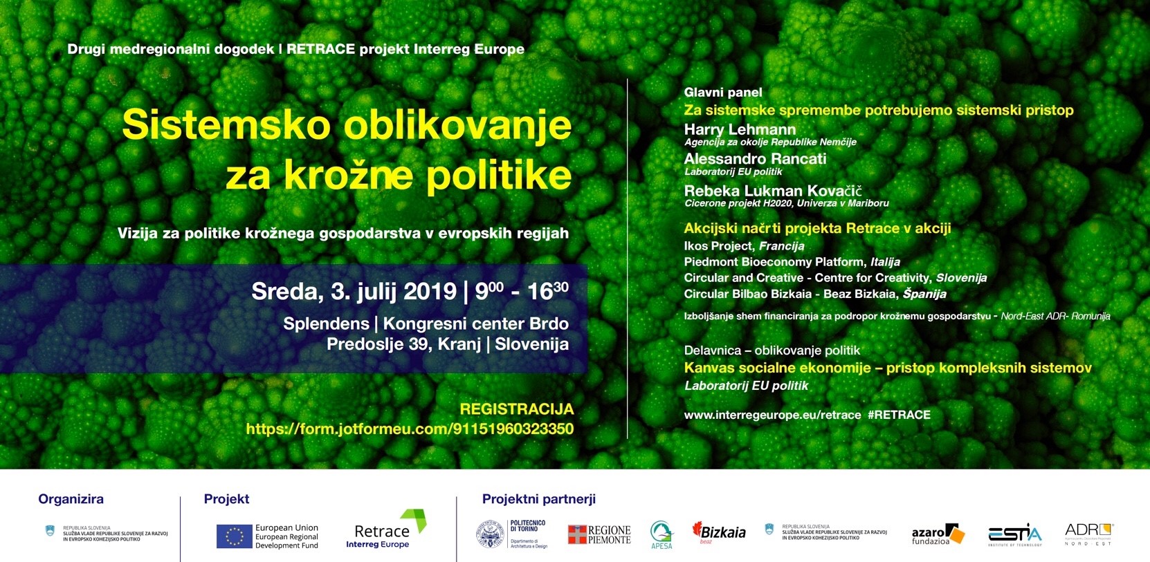 Ne gre torej toliko za vprašanje, kaj moramo storiti, temveč – kako. Nekaj odgovorov bomo ponudili na dogodku Sistemsko oblikovanje za krožne politike, ki ga gostimo kot partner v projektu RETRACE. V goste smo povabili govorce, ki bodo v dopoldanskem delu predstavili alternativne pristope oblikovanja politik na področju ogljične nevtralnosti in snovne učinkovitosti v Nemčiji, EU Laboratorij politik za inovativnost oblikovanje evropskih politik in primere dobrih praks EU projektov za prehod v krožno gospodarstvo. Predstavili bomo tudi rezultate projekta Retrace.